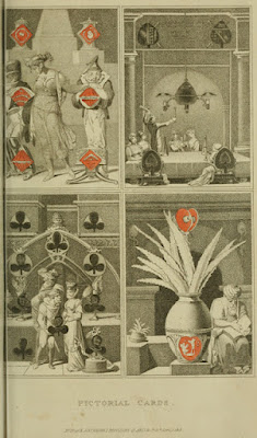 By "this book" I'm going to talk about my October release, "His Wicked Christmas Wager". I wanted to have my hero and heroine involved in a wager, which I hoped could be based on a card game. But then I suddenly realized I had no idea what cards would have looked like in the Regency era. And since I need to "see" what my characters are doing, so that I can describe it to my readers, I just had to find out. And now I know, whenever I read a card-playing scene in another regency set story, that they would have looked like this: